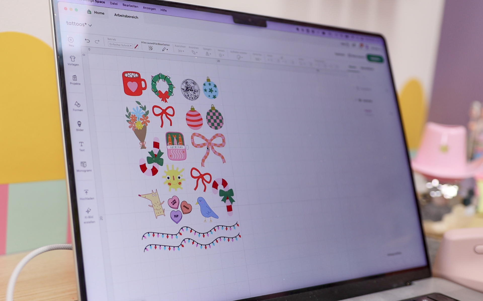 Ich habe mir mehrere Designs aus dem Design Space ausgesucht und alle Elemente miteinander verbunden. Danach ganz wichtig: Tattoos immer spiegeln, weil sie später umgedreht auf die Haut aufgebracht werden