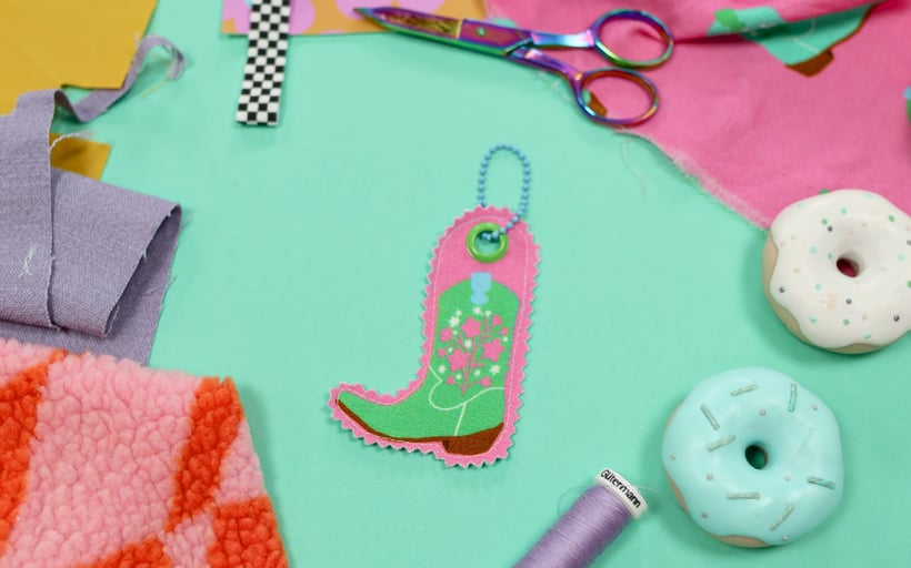 Dieser kleine Anhänger ist perfekt, wenn man hübsche Motivreste hat, die man einfach nicht wegwerfen kann. Ich verstärke das Motiv zuerst mit einer Einlage wie H200, damit der Stoff etwas stabiler wird. Für mich eine der schönsten und einfachsten Möglichkeiten, Stoffreste sinnvoll zu verwerten.