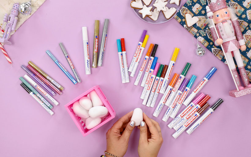 Weihnachten steht vor der Tür – und ich weiß, wir alle suchen doch jedes Jahr aufs Neue nach schönen, einfachen und ein bisschen besonderen DIY-Ideen. Dieses Mal habe ich gleich fünf kreative Projekte vorbereitet, die ihr mit den edding Glanzlackmarkern umsetzen könnt. Die Marker schreiben und malen nämlich auf fast allem, was ihr euch vorstellen könnt: Stein, Glas, Stoff, Metall, Folie und Papier – perfekt also für meine kleine Weihnachts-DIY-Reihe!