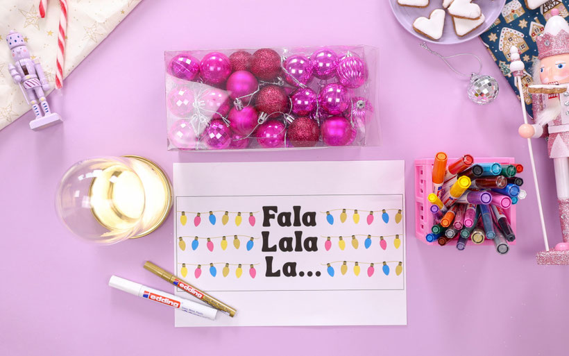 Hier kannst du die Falalalala-Vorlage kostenlos herunterladen. Lade das Bild herunter und drucke es auf 100% aus. Die Vorlage ist kostenlos, darf nicht gewerblich benutzt werden, der Neu-Upload (auch verändert) des Bildes ist verboten. Alle Rechte des Bildes liegen bei DIY Eule (R) / Nastasia Mohren.
