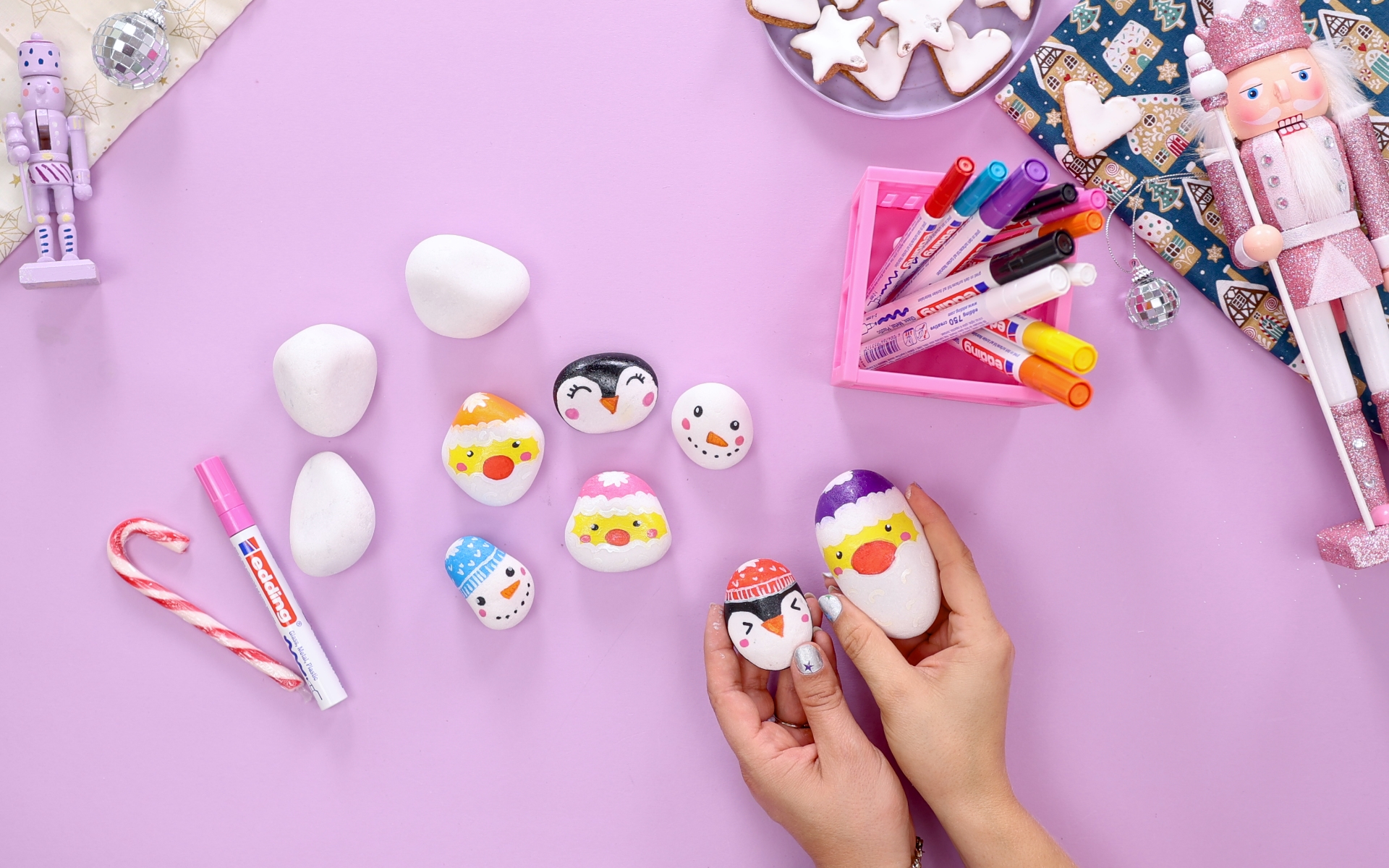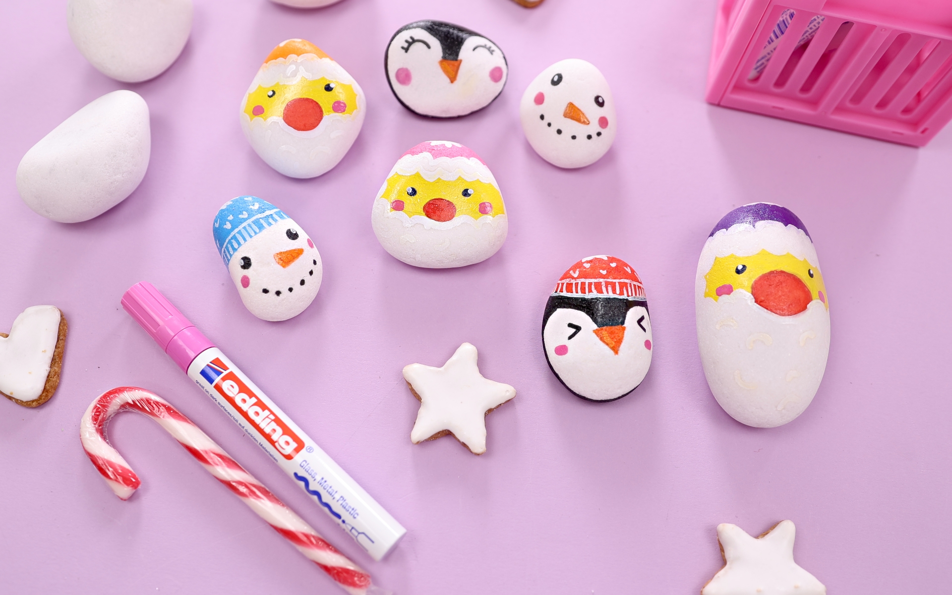Ich starte mit einer meiner liebsten Ideen überhaupt: bunte Weihnachtssteine! Ob Pinguin, Schneemann oder Weihnachtsmann – die kleinen Motive bringen sofort festliche Stimmung und sind super für Bastelnachmittage mit Kindern geeignet. Ihr könnt die Farben und Motive natürlich ganz an eure Deko anpassen – klassisch in Rot-Weiß oder knallbunt wie bei mir. Die Steine sehen toll auf dem Tisch, am Geschenkband oder sogar als kleine Akzente im Garten aus.