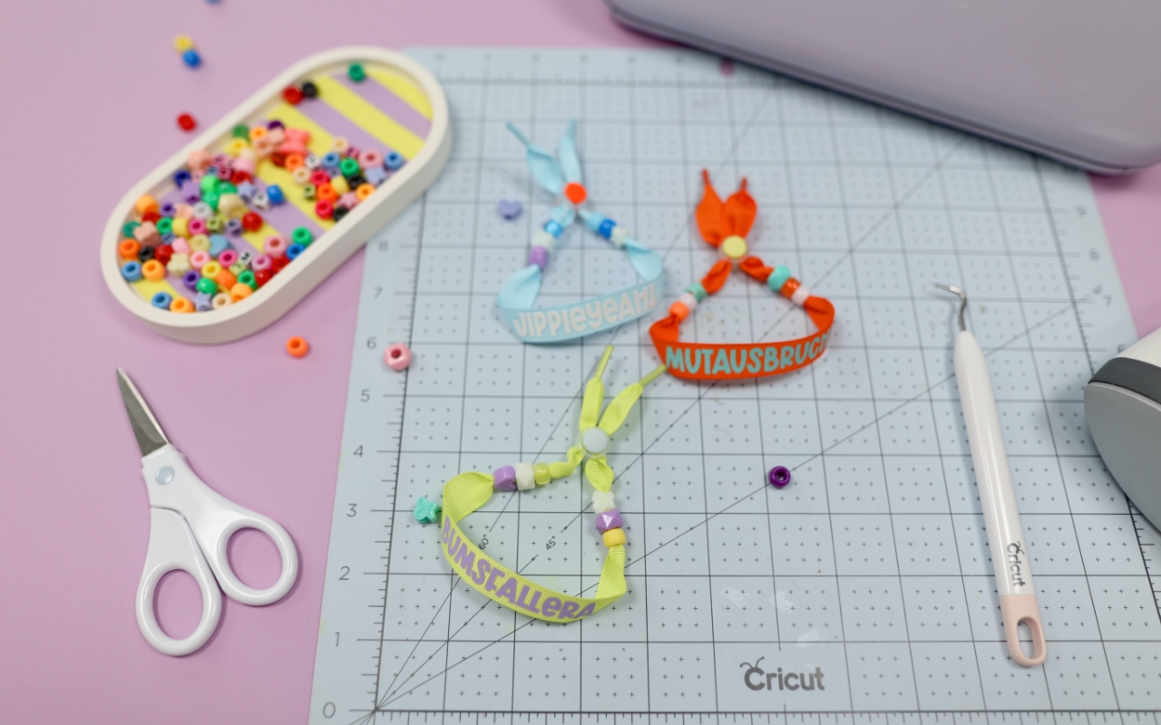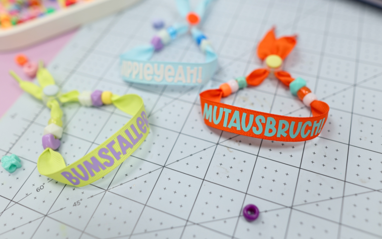 Diese Armbänder sind perfekt, wenn du schnell und unkompliziert Schmuck selber machen möchtest. Mit Iron-On Folie kannst du Namen, kurze Sprüche oder Motive auf breite, textile Armbänder pressen und sie so komplett personalisieren. Besonders schön: Die Armbänder eignen sich auch toll als Geschenk oder als gemeinsames DIY-Projekt auf Partys oder Kindergeburtstagen.