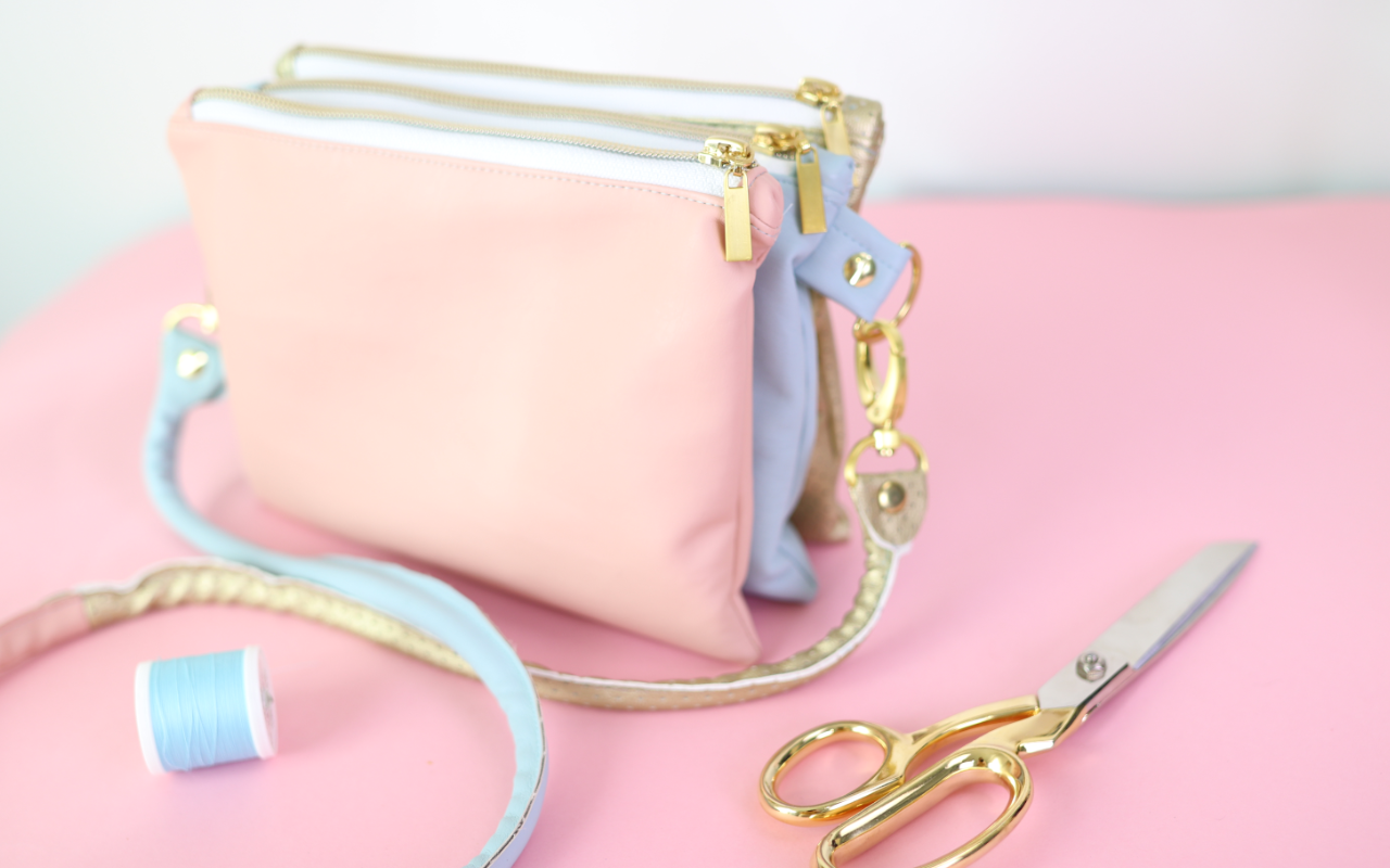 Die Trio-Bag ist eine Handtasche aus drei zusammengenähten Taschen mit Reißverschlüssen und Zwischenfächern. Auch der Henkel ist selbst genäht.