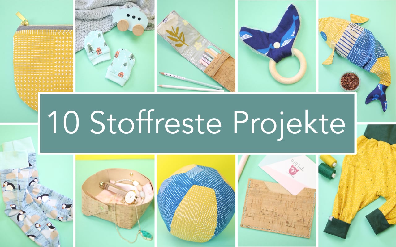 Heute zeige ich euch wieder 10 schnelle Last-Minute Geschenkideen aus Stoffresten, inkl. Jersey-Resten, Korkresten und Lederresten. Dafür gibt es viele kostenlose Schnittmuster.