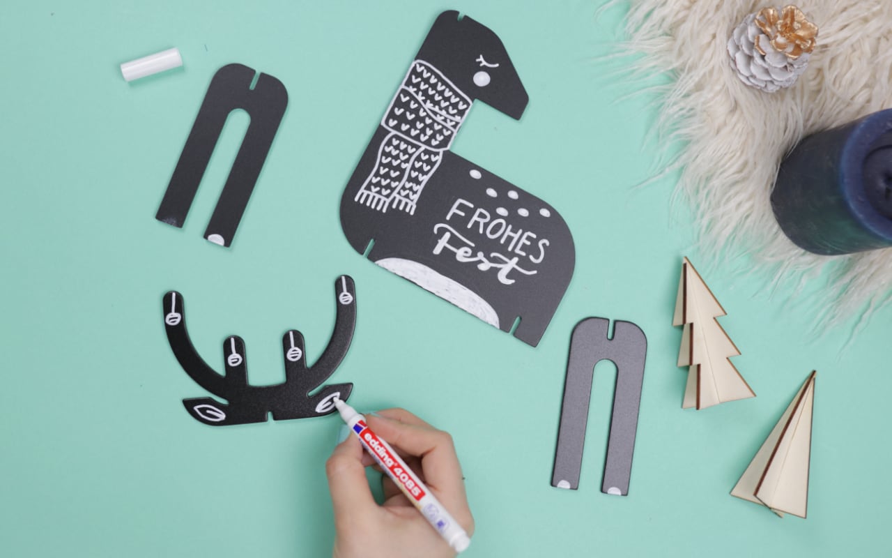 [Werbung] Heute zeige ich euch, wie ihr mit den edding Kreidemarkern ein weihnachtliches Reh gestalten könnt – in drei verschiedenen Varianten.