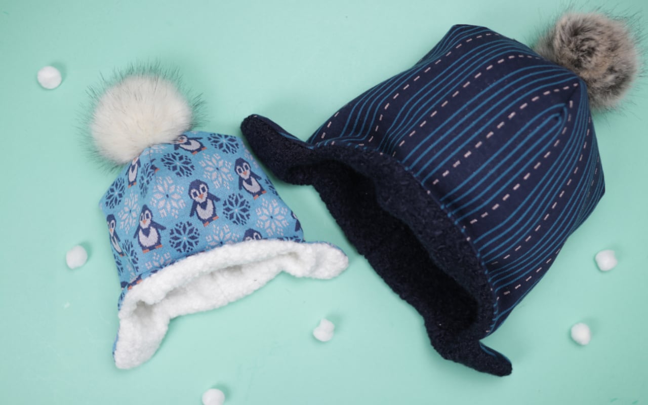 Kuschlige Mützen nähen für Männer und für Kleinkinder mit Ohren und Bommel –mit kostenlosem Schnittmuster!