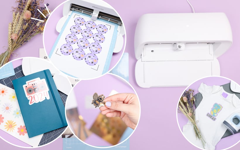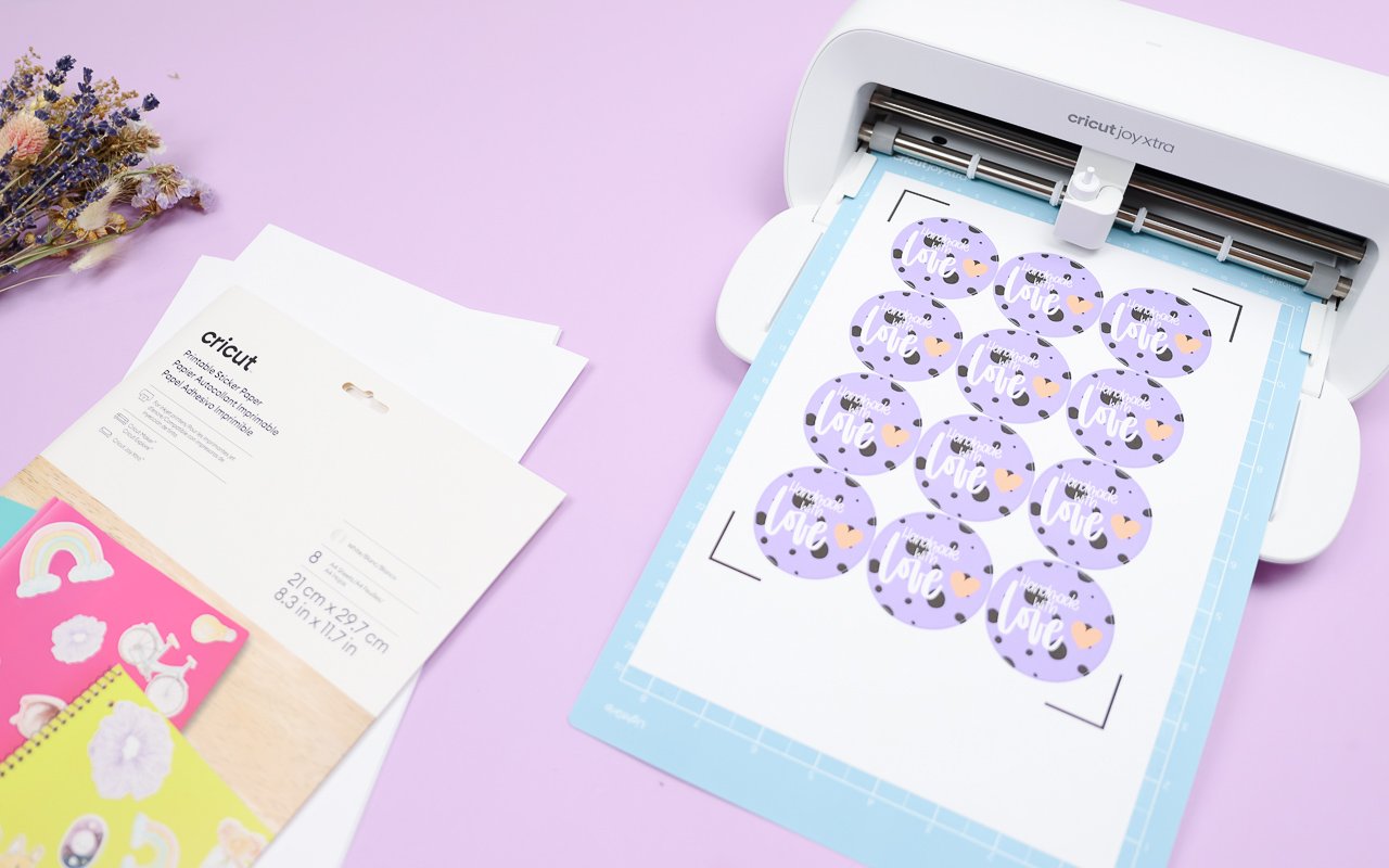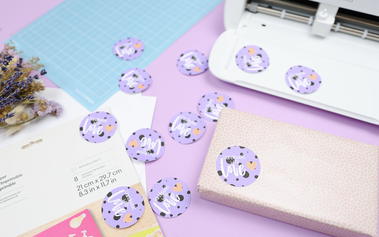 Der Klassiker für die Print then Cut Funktion sind selbstgemachte Aufkleber. Hier gibt es viele verschiedene Varianten. Im Video nutze ich Sticker Paper, bedruckbare Vinylfolie und wasserfeste, bedruckbare Sticker Sets. Bei allen Stickern wird das Motiv erst mit dem Tintenstrahldrucker gedruckt und dann mit Hilfe von gesetzten Markierungen mit dem Cricut ausgeschnitten.