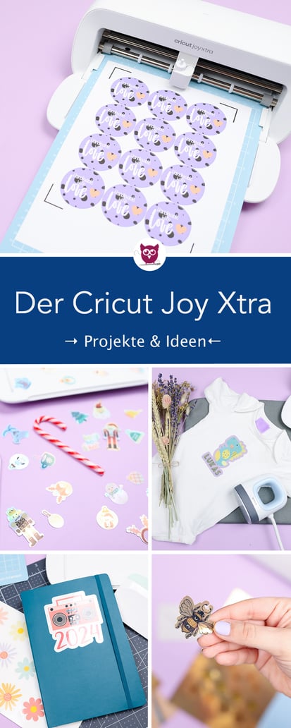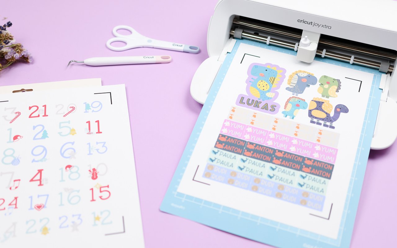 Der Cricut Joy Xtra, erschienen in diesem Jahr, kann alles, was der Joy kann und noch ein wenig mehr. Neben Schneiden, Folienakzenten, Schreiben und Zeichnen, bietet er auch die Print then Cut Funktion. Außerdem neu ist die Größe: so sind jetzt auch A4 Projekte möglich. Trotz seiner erweiterten Fähigkeiten bleibt er aber super kompakt. Natürlich könnt ihr damit die Klassiker wie Vinylfolie, Iron-On oder Papier schneiden. Nachfolgend zeige euch euch noch einige spezielle Print then Cut Projekte für Bügelbilder und Sticker.