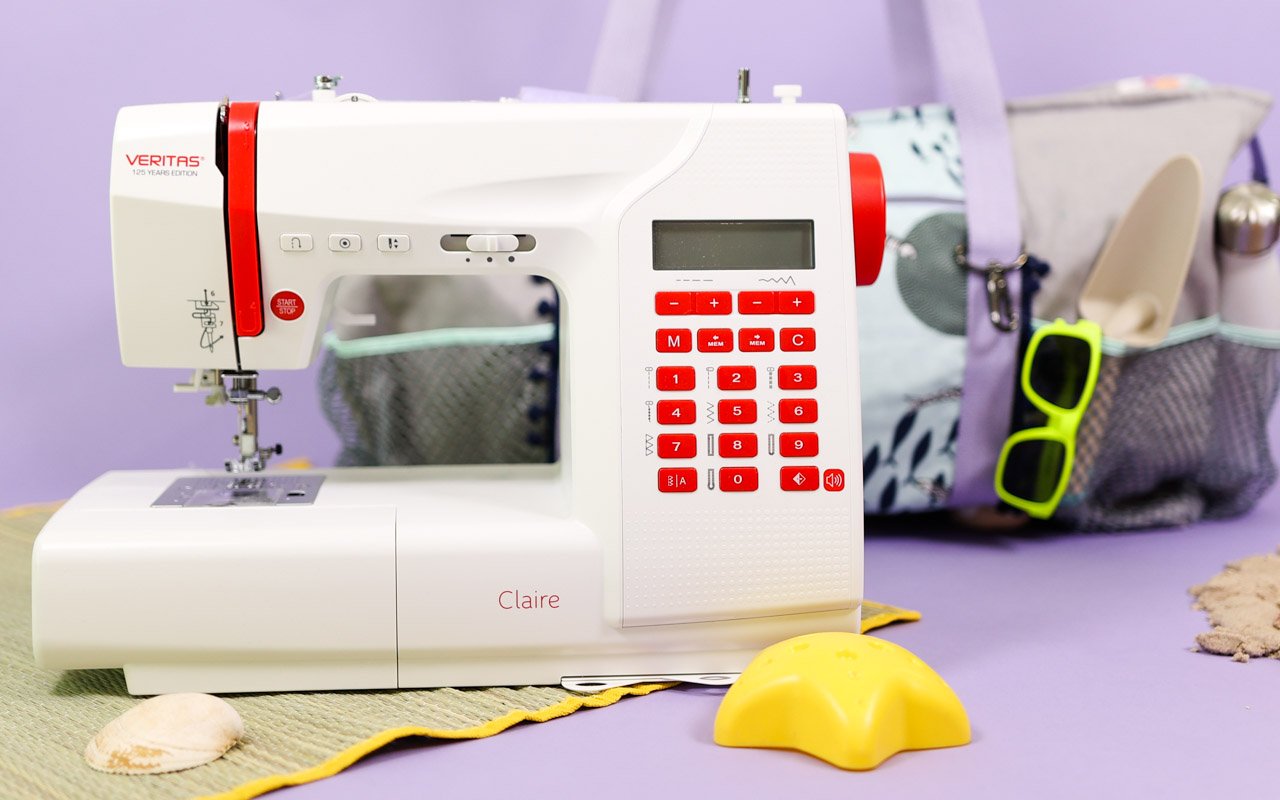 Die Strandtasche habe ich mit der Veritas Claire genäht und das hat sie wirklich super gemacht, auch die vielen Lagen und starken Materialmixes! Wusstet ihr, dass Veritas Nähmaschinen immer nach starken Frauen in der Geschichte benannt werden? Claire Adams war eine Schauspielerin und Wohltäterin.