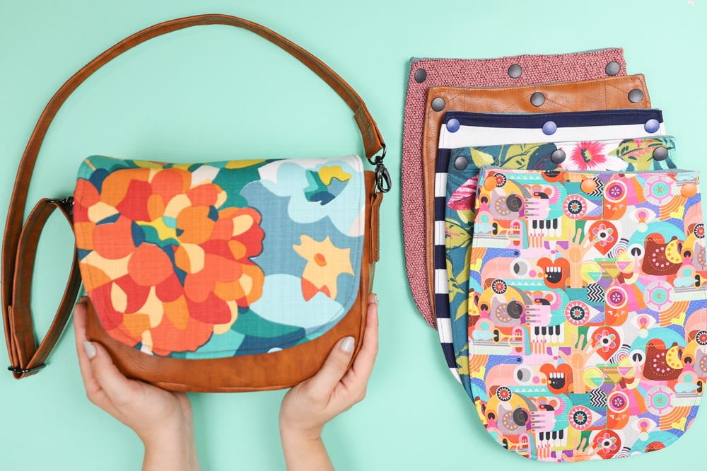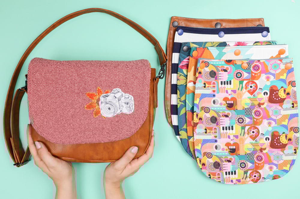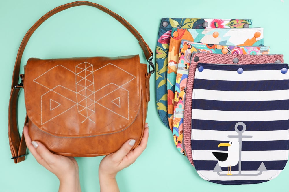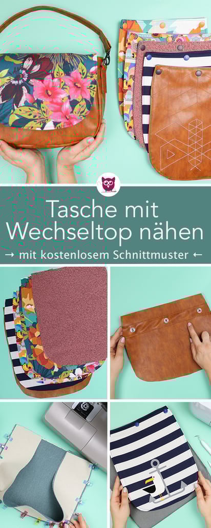 NaHeute habe ich wieder eine ganz ausgefuchste Taschenanleitung für euch: Das ist #TascheTinaTurn – eine Handtasche mit Wechseltop. Ganz nach eurer Stimmung oder dem Anlass könnt ihr viele verschiedene Taschenklappen nähen und habt so quasi immer die passende Tasche. Die Klappen könnt ihr einfach mit drei Druckknöpfen wechseln und so auch zu einem späteren Zeitpunkt immer neue Klappen herstellen. Dabei könnt ihr bunte Stoffe in Szene setzen, mit Patchen arbeiten, handsticken, plotten oder Muster steppen. Bei #TascheTinaTurn könnt ihr aber nicht nur die Klappe austauschen – ihr könnt auch direkt verschiedene Henkel arbeiten und diese eben auch passend zur Klappe austauschen. Für die Tasche gibt es ein kostenloses Schnittmuster, eine kostenlose Vorlage für die gesteppte Klappe mit Falter und eine kostenlose Plotterdatei für die Möwe.