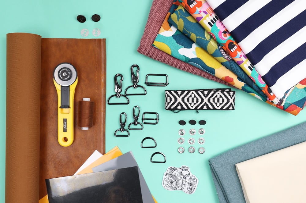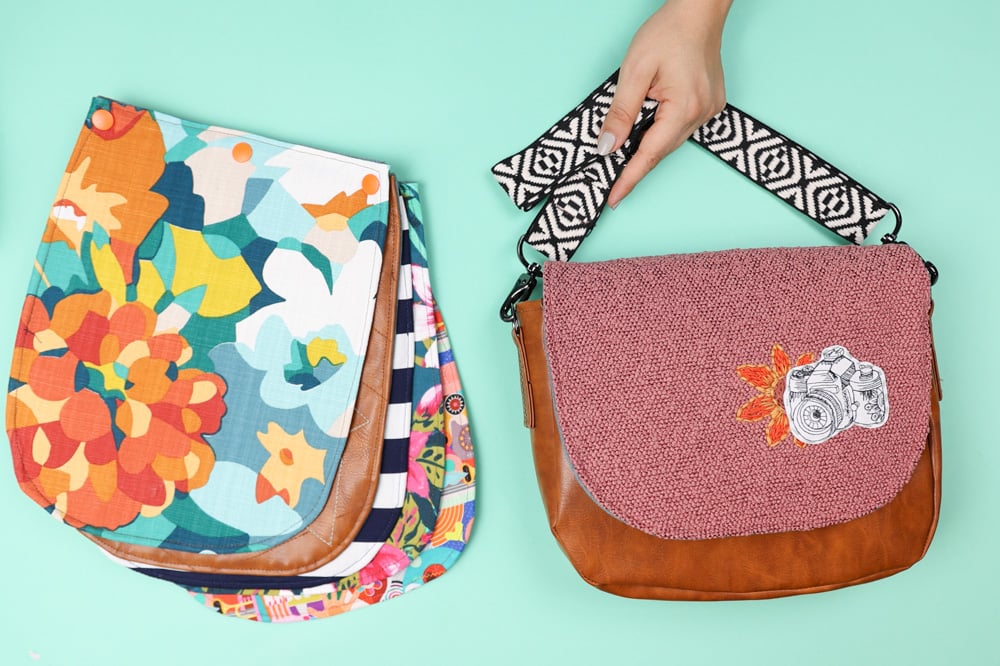 Die Tasche selbst sollte dabei am besten aus einem Kunstleder gearbeitet werden. Hier empfiehlt sich eine starke Universalnadel. An den Seitenlaschen treffen hier viele Lagen Kunstleder aufeinander – in der Anleitung findet ihr aber Alternativen, falls eure Maschine das nicht packt. Diese Tasche hier wurde mit Decovil Light gearbeitet, damit sie besonders viel Stand ist. Sollte euch die Einlage zu sperrig sein, könnt ihr hier auch die dünnere S 320 verwenden.