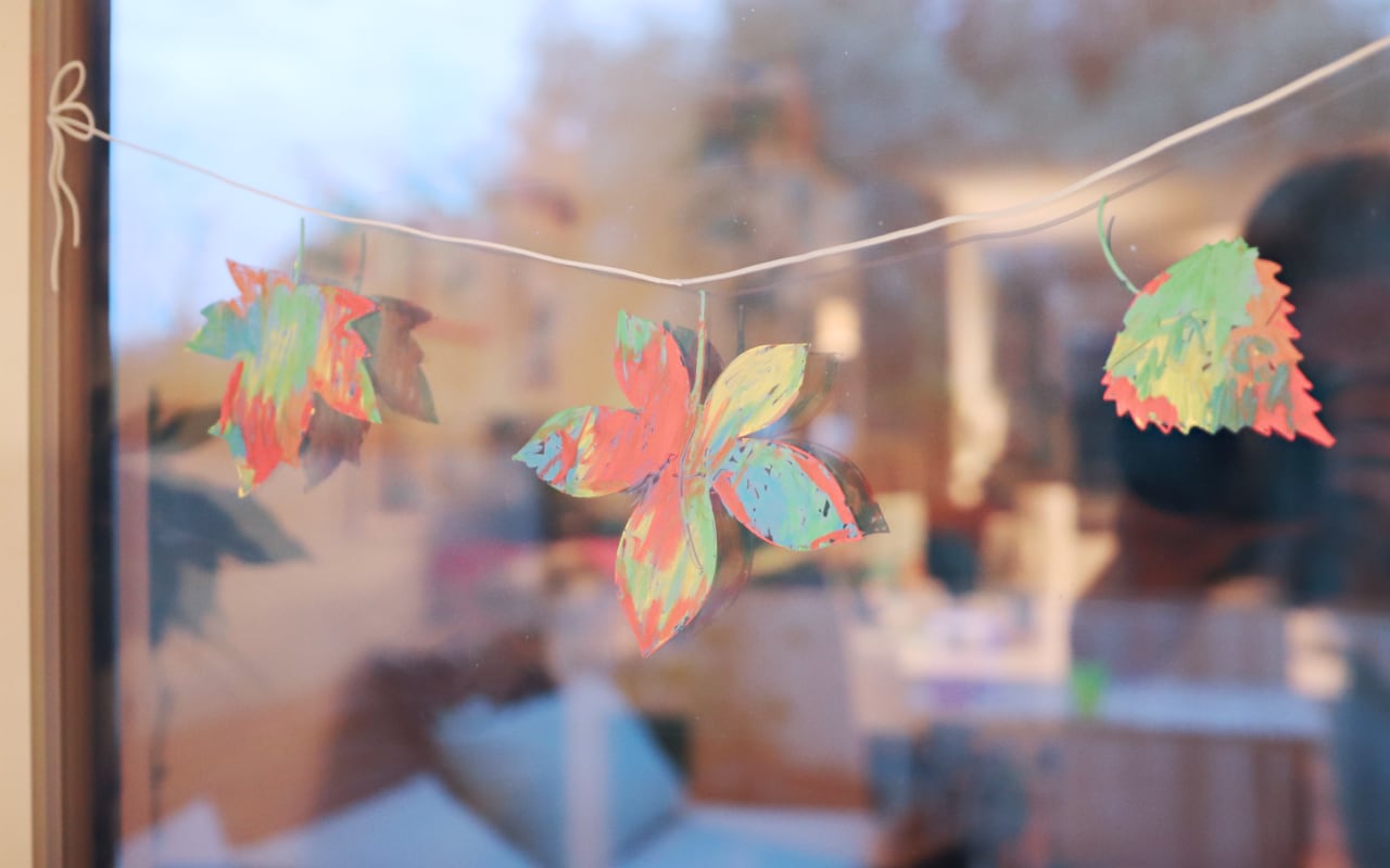 Die Blätterkette fürs Fenster ist ein tolles erstes DIY zusammen mit Kind. Es kann einfach wild drauf los gekritzelt werden und am Ende hat man ein super schönes und sauberes Ergebnis, das den Charme von Kinderzeichnungen mit schöner Herbstdeko kombiniert.