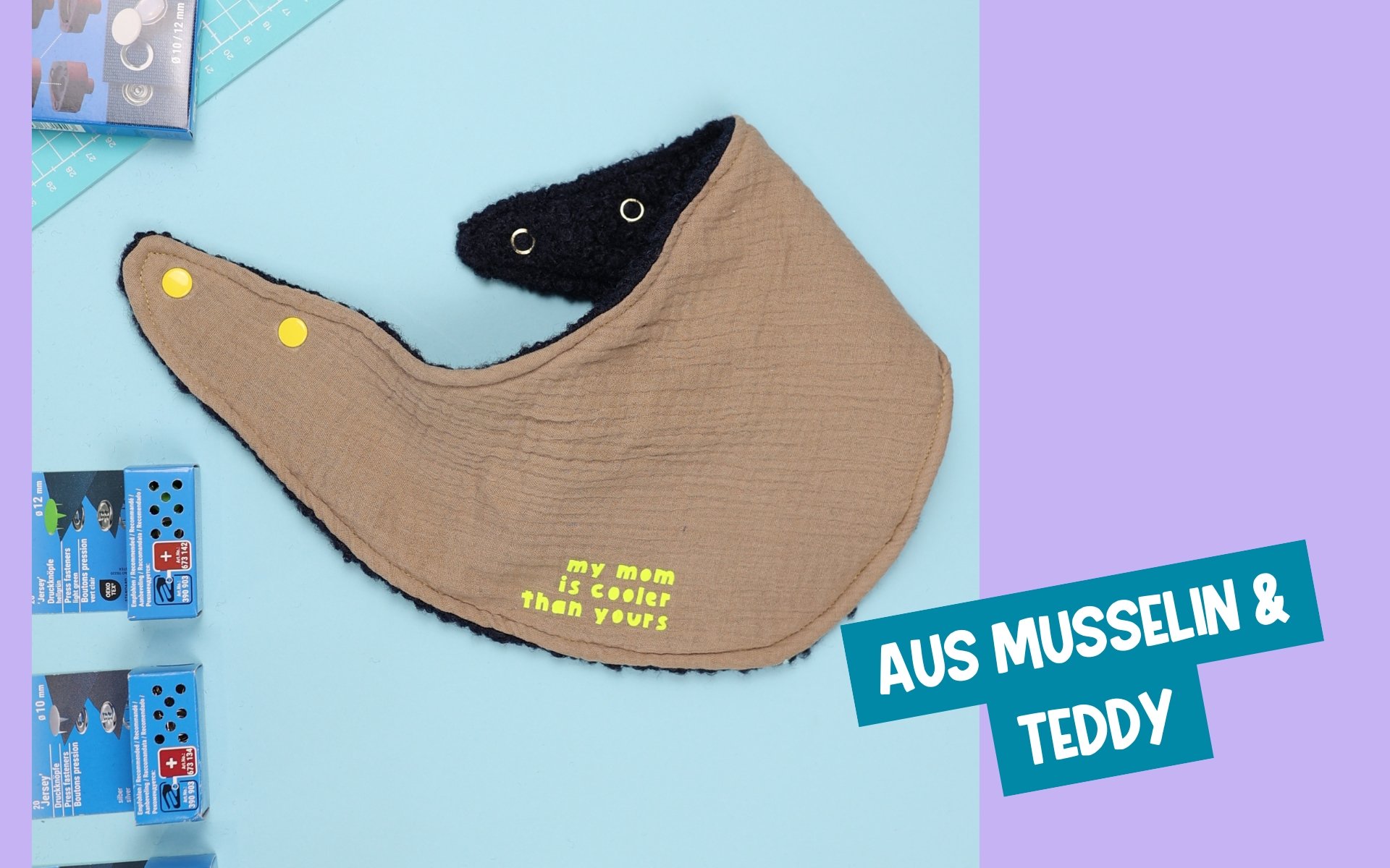 Gemeinsam haben alle drei Varianten meiner Tücher: Sie werden mit zwei Prym Jersey Druckknöpfen verschlossen – super praktisch, weil sie dadurch größenverstellbar sind und sich easy an- und ausziehen lassen.