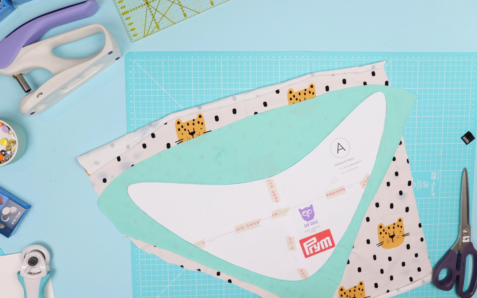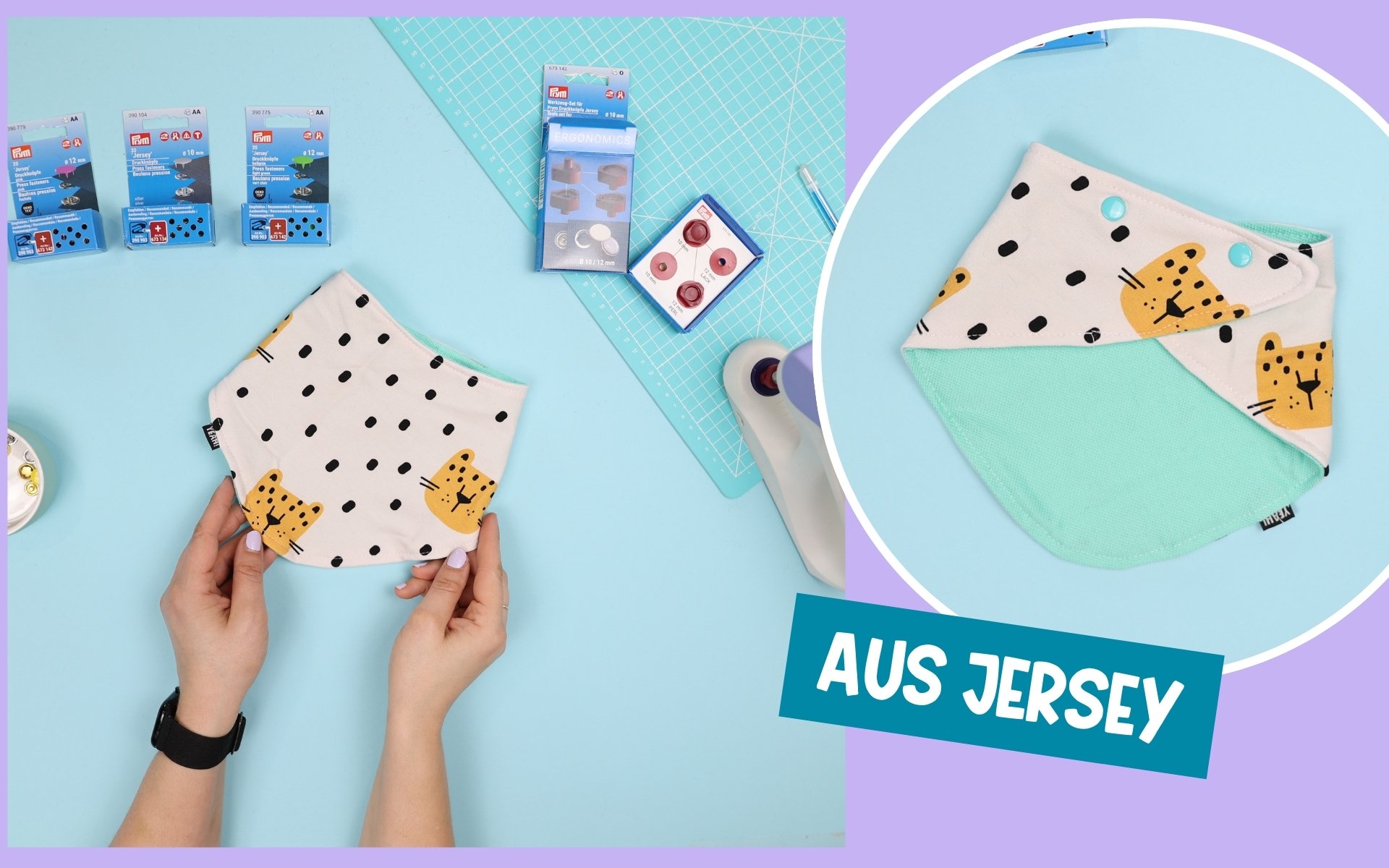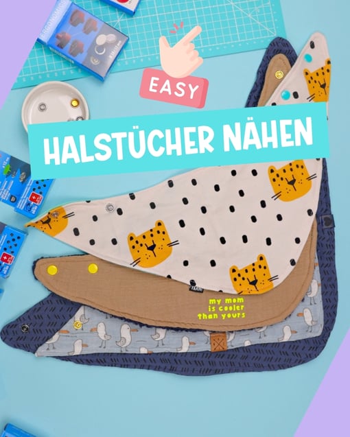 Heute gibt’s ein richtig tolles Anfängerprojekt für euch: super süße Kinder Halstücher nähen – perfekt zum Stoffreste verwerten, zum Verschenken oder einfach zum Selberfreuen. Ihr bekommt ein kostenloses Schnittmuster, ich zeige euch, wie ihr Jersey Druckknöpfe anbringt (und wieder entfernt, falls ihr mal was verpeilt) und natürlich dreht sich alles um das mega praktische Prym VARIO Creative Tool!