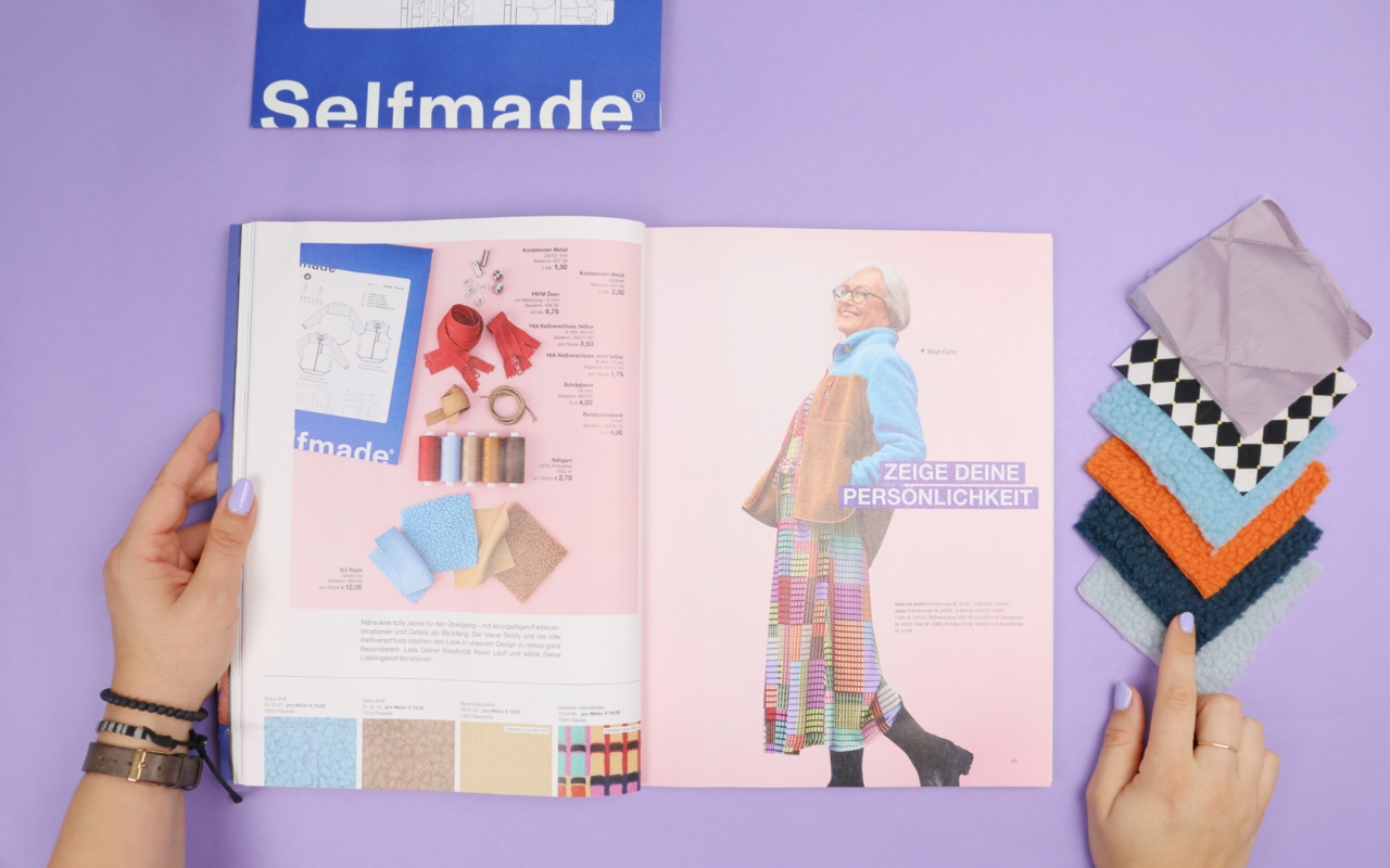 Meine Farb- und Materialauswahl stand also fest – alles aus einer Hand von Selfmade®. Es gibt übrigens auch 9 Selfmade® Filialen in Deutschland, sodass ihr auch vor Ort schauen könnt, welche Stoffe sich gut kombinieren lassen. Ich verlinke euch hier mal die Produkte, die ich bei der Jacke verwendet habe: