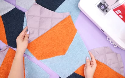 Beim Materialmix solltet ihr immer darauf achten, dass sie die Materialien gut miteinander vertragen. Das heißt, dass sie z.B. eine ähnliche Dicke haben, am besten entweder alle elastisch sind oder alle nicht elastisch sind. gerade beim Mix von Kunst- und Naturfasern wäre es wichtig, dass ihr die Stoffe vorwascht, weil sie unterschiedlich einlaufen. Aber auch beim Mix von so vielen verschiedenen Farben, solltet ihr das Vorwaschen nichts skippen, da die Stoffe beim ersten Waschen immer etwas Farbe verlieren können. Ich habe hier übrigens eine Universalnadel, Allesnähergarn und einen Geradstich verwendet beim Nähen.