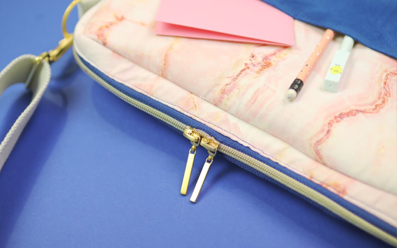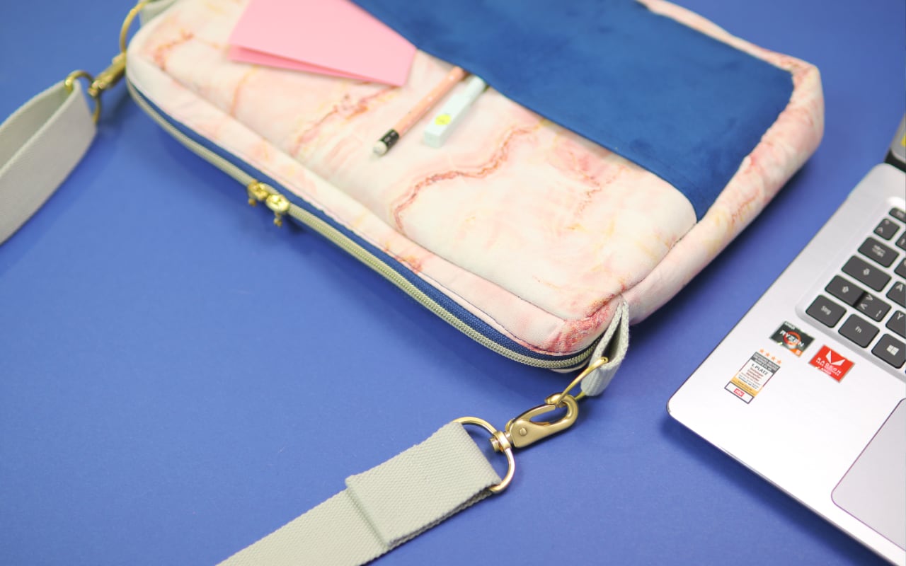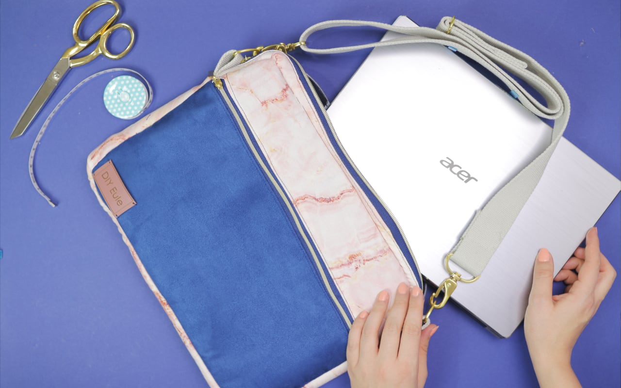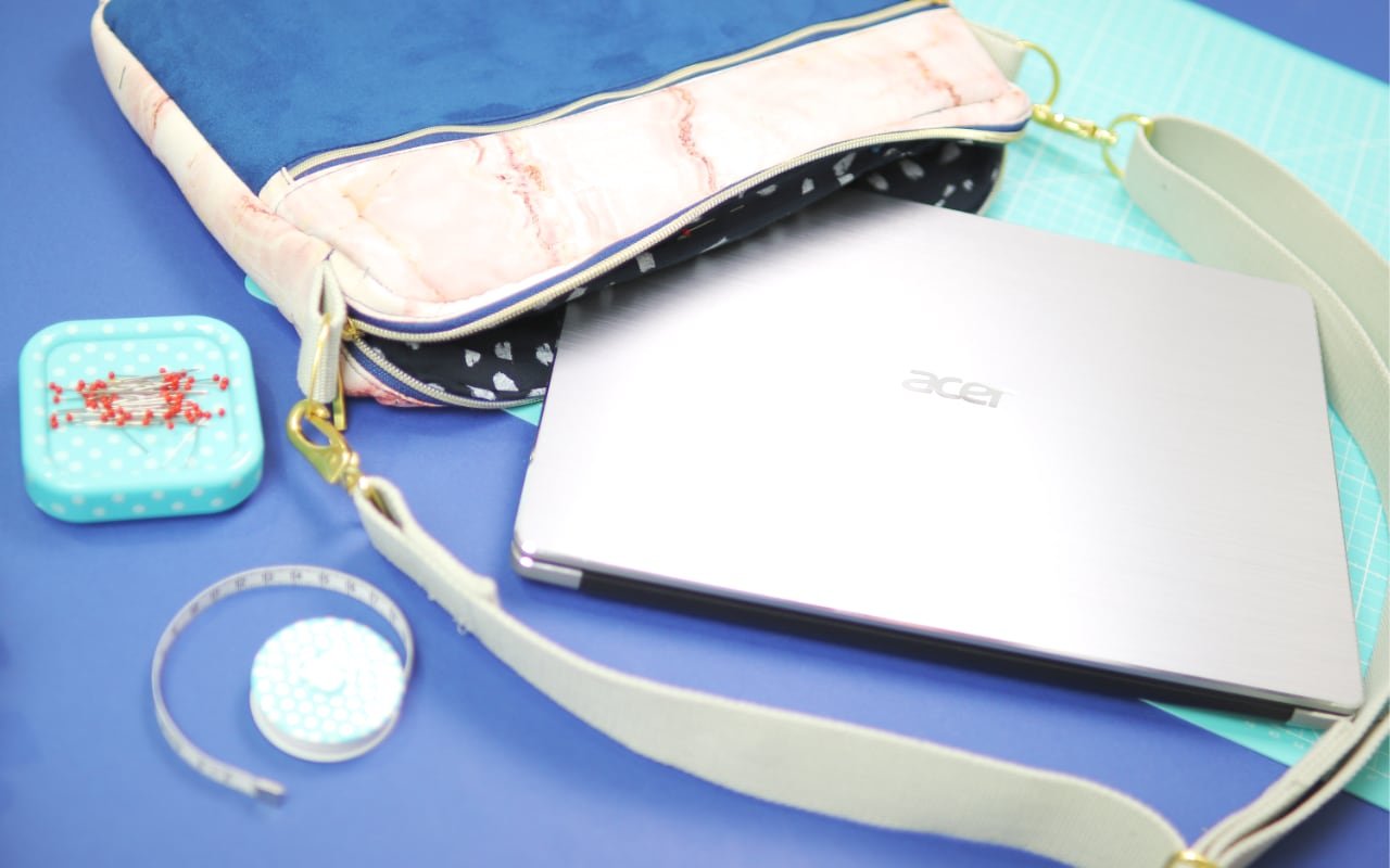 Vor einiger Zeit habe ich euch gezeigt, wie ihr eine schmale Laptoptasche mit Schnalle perfekt passend für euer Notebook nähen könnt. Darauf hin hat mich öfter der Wunsch nach einer tieferen Tasche mit Reißverschluss und Trageriemen zum Umhängen erreicht. Zusammen mit Acer und dem Notebook Swift 3 präsentiere ich euch heute #LaptoptascheLaila. Die Tasche bietet weiteren Platz für Notizbücher und co. Außerdem habt ihr vorn ein extra Reißverschlussfach. Hinten gibt es ein zusätzliches Fach mit Unterteilung, für Notizen, Stifte, Karten usw. Innen habe ich die Tasche mit Poron verstärkt. Das ist eine Shock-absorbierende, schaumstoffartige Einlage, die ich schon lange einmal ausprobieren wollte. Ich weiß, dass es sie da wo ich sie gekauft habe, nicht mehr all zu lange geben wird. Alternativ könnt ihr natürlich auch andere Einlage verwenden. Sie sollten nur ein gewisses Volumen und etwas Festigkeit mit sich bringen, damit sie einen guten Schutz bieten. Zugegeben, ich hatte auch meine Probleme mit dem Poron beim Nähen – ihr solltet unbedingt vorher testen ob eure Maschine mehrere Lagen davon schafft und das auch in Kombination mit eurem Gurtband.