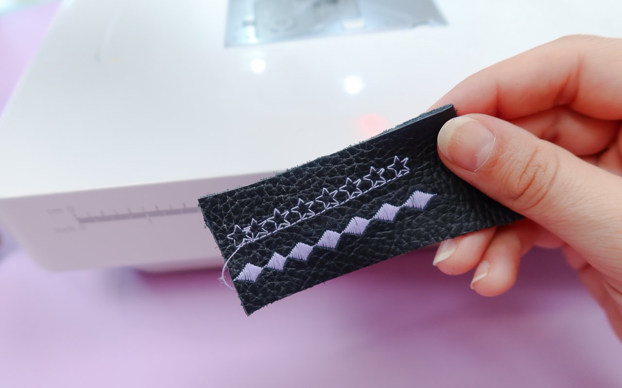 - Je nach Leder sind auch Zierstiche Möglich. Teste hier vorher auch wieder unbedingt an einem Reststück und nähe wenn möglich einlagig.