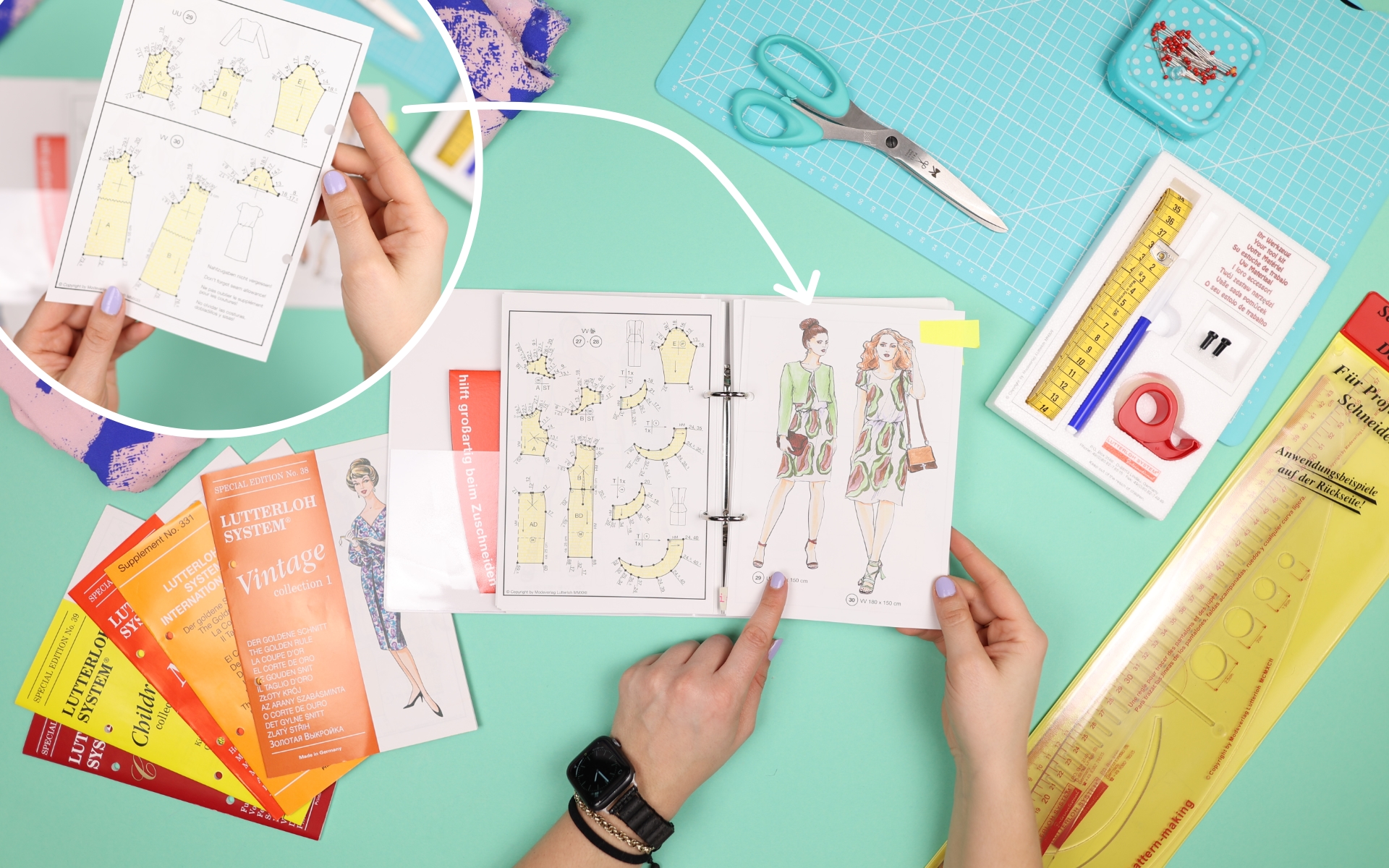 Im Standardwerk sind bereits 280 Schnitte enthalten und ich würde euch auf jeden Fall empfehlen, mit einem einfachen Projekt zu starten. Nachdem ich mich für ein frühlingshaftes Kleid entschieden hatte, ging es ans Eingemachte. Zuerst musste ich meine Ober- und Hüftweite messen und das war's auch schon mit den Vorbereitungen. Mit Hilfe der beiliegenden Anleitung und Werkzeuge konnte ich dann Schritt für Schritt mein Schnittmuster auf das Papier übertragen.