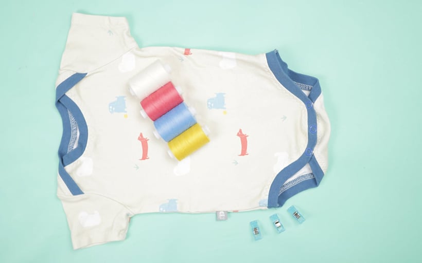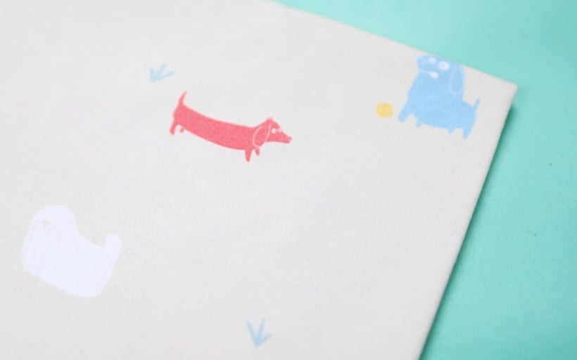 Natürlich darf auch ein Hundestoff nicht fehlen. Der Stoff #HundeRunde zeigt drei witzige Hunde in weiß, rot und blau auf einem Ecru Grund. Auch hieraus habe ich einen Body genäht.