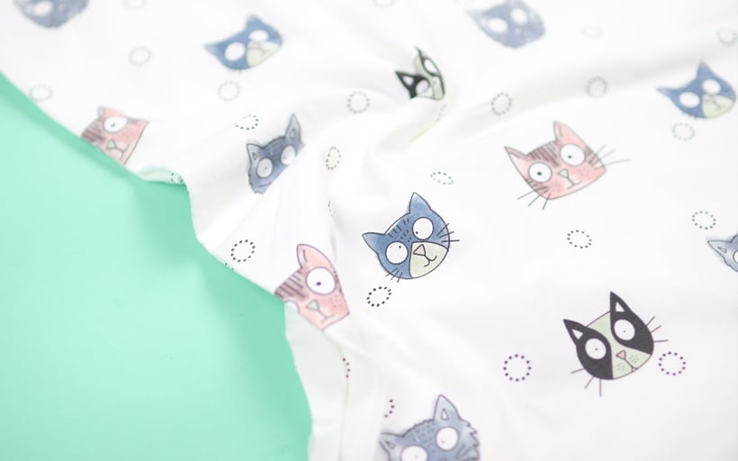 Die #KomischenKatzen sind ein super süßer Stoff mit Katzenmotiv. Ich habe mir das Ganze als Jersey drucken lassen und daraus einen neidlichen Body genäht. Ein Muss für alle Katzen-Fans!