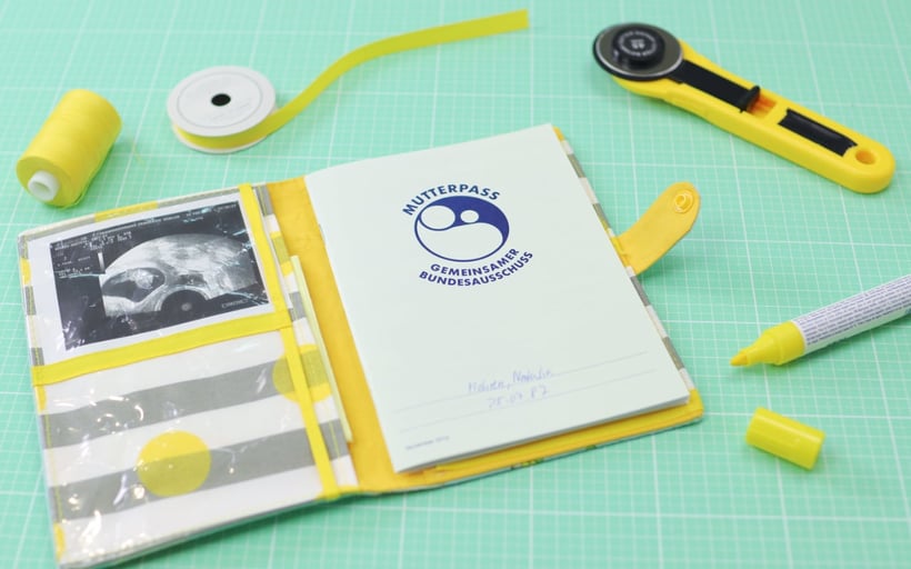 Meine treue Begleitung durch die ganze Schwangerschaft war meine Mutterpasshülle. Aus der Community kam der witzige Namensvorschlag #MuPassa. Hier bekommst ihr alles unter, was ihr braucht! Vorn befinden sich zwei Klarsichtfächer für die Ultraschallfotos. Außerdem gibt es mehrere große und kleine Fächer für Rezepte, Zettel und Broschüren. Wichtig ist, dass ihr vorne den Namen auf die Hülle schreibt, damit der Mutterpass immer gleich zugeordnet werden kann. Die Hülle lässt sich mit einem Druckverschluss verschließen, sodass nichts herausfällt.