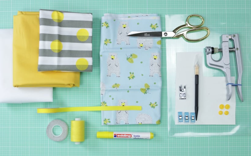 - Futterstoff 2: 30 x 70 cm Canvas oder feste Baumwollwebware in Gelb