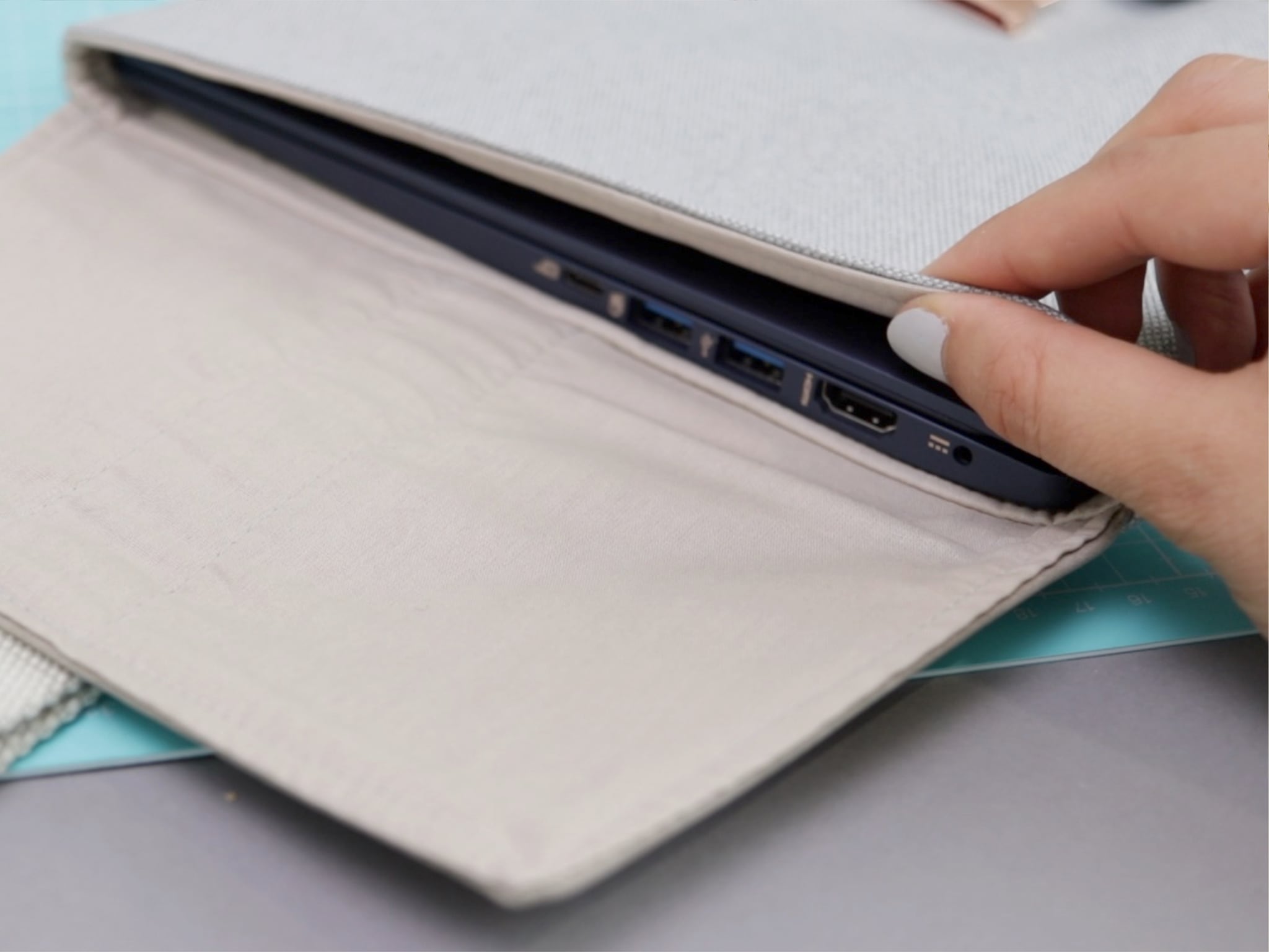 Im Video erkläre ich euch ganz genau, wie ihr die richtigen Maße für euren Rechner ermittelt um die Tasche passgenau anzufertigen. Das Schnittmuster ist bewusst einfach gehalten und es gibt nur drei Schnittteile: Die Haupttasche, die Außentasche und die Klappe.