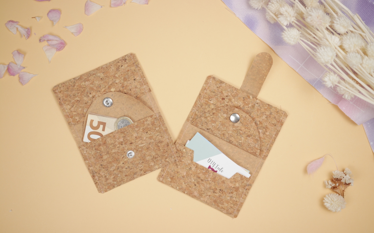Ein kleines Portemonnaie aus Korkstoff ist eine tolle Geschenkidee. Dieses Portemonnaie wird einfach mit dem Cricut Maker zugeschnitten und dann mit wenigen Nähten genäht. Es gibt ein Fach für Kleingeld, das mit einem Druckknopf geschlossen wird und ein Fach für Karten. Korkstoff ist ein Naturmaterial und macht sich toll für Taschen und Accessoires. Da der Stoff nicht ausfranst, könnt ihr es links auf links verarbeiten und habe im Handumdrehen tolle Projekt.