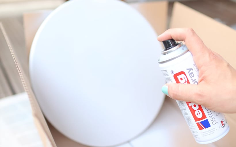 Das DIY geht natürlich auch mit anderen Objekten, wie Vasen, Schüsseln, Gläsern, Körben, Holzgegenständen, Steinen... lasst eurer Fantasie einfach freien Lauf. Die edding Permanent Sprays halten dabei auf fast jeder Oberfläche: Glas, Holz, Metall, Kunststoff, Styropor, Papier, Tapete, Leinwand, Keramik, Stein, Korb und viele andere Materialien. Die Farben haben eine unglaublich starke Deckkraft und trocknen super schnell. Je nach Oberfläche solltet ihr ggf. anschleifen und eine der Grundierungen verwenden (Universal oder Kunststoff). Ich habe am Ende auch noch einen Klarlack benutzt, den es in seidenmatt und glänzend gibt. Alles Sprays müssen erst 3 Minuten gut geschüttelt werden. Dann wird der Sprühkopf entfernt und ihr könnt, z.B. mit einem Schraubendreher, den roten Sicherheitsring entfernen.