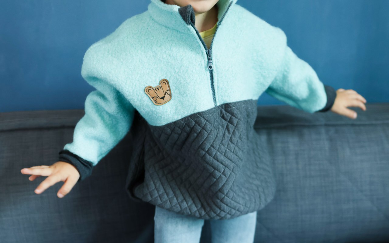 Generell habt ihr habt die Wahl zwischen zwei verschiedenen Kragenformen. Falls ihr hier unsicher seid, bietet Ida & Tilda tolle Videoanleitungen zu beiden Kragenformen an. Entscheidet euch außerdem, ob ihr den Troyer mit einem Reißverschluss oder Knöpfen nähen wollt. Für den Saum könnt ihr zwischen einem regulären Saum oder einem Bauchbündchen wählen. Und für alle, die gerne ihre Hände in Taschen vergraben, lassen sich auch Seitentaschen einarbeiten. Für die Kleinen unter uns gibt es den Schnitt in den Größen 74-134 und für die Damen von XS bis XXL. Ich habe beide Troyer mit Reißverschluss in Version 2 (also mit kompletter Teilung), mit Taschen und Gummibandsaum gearbeitet. Im YouTube Video zeige ich euch genau, wie es geht! Im Video zeige ich das Meiste am Troyer für meinen Sohn, einfach weil der besser ins Bild passt.