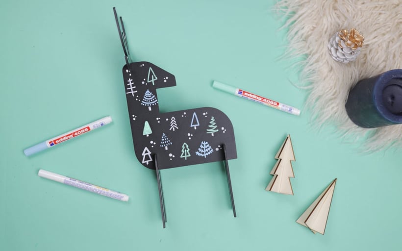 Viele von euch wissen, dass ich die edding Kreidemarker einfach liebe! Letztes Jahr zur Weihnachtszeit habe ich einen großen Weihnachtsbaum an mein Fenster gezaubert – und das ist nur eines von vielen Kreidemarkern Projekten. Heute zeige ich euch drei Versionen, wie ich dieses Tafel-Reh gestalte. Dabei ist mir besonders wichtig, vor dem Gestalten eine Farbwelt zu definieren. Denn steht die erstmal fest, läuft der Rest wie ganz von alleine. Wenn ihr pro Projekt wirklich nur wenige, aufeinander abgestimmte Farben verwendet, bekommt ihr fast automatisch ein tolles Ergebnis.