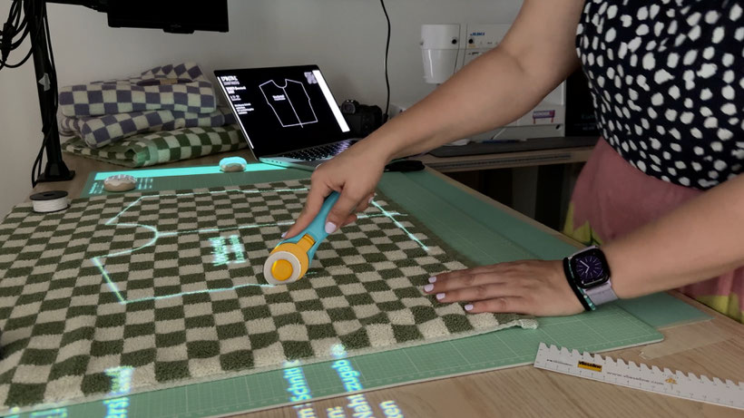 Nach dem ersten Video haben mich nach und nach immer mehr von euch auf Pattern Projector hingewiesen – und Leute, das ist ein absoluter Gamechanger fürs Zuschneiden mit dem Beamer! Die Webseite (kostenlos!) macht es super einfach, digitale Schnittmuster direkt auf den Stoff zu projizieren. Du bildest quasi deine Schneidematte mit dem digitalen Grit nach und ziehst die Ecken digital auf die deiner Matte. Du lädst dann einfach dein Schnittmuster hoch (z. B. eine Beamer- oder eben auch eine A4-Datei), Maßstab & Größe werden dann automatisch angepasst! Alles funktioniert direkt online und ist auch für Technik-Muffel super zugänglich. Du kannst dir einen Lageplan anzeigen lassen, Größen ausblenden, Maßlinien einblenden – und das Beste: Das Ganze geht auf dem Laptop, Tablet oder sogar dem Handy! Für mich ist Pattern Projector wirklich die perfekte Lösung, um endlich stressfrei mit dem Beamer zuzuschneiden – ganz ohne Drucker, Schere und Papiersalat.
